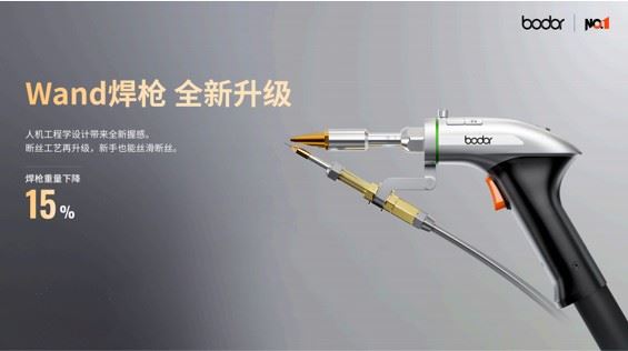 Bodor Eco自冷卻手持雷射焊接機的外觀設計融合了邦德獨有的造型風格及優雅的機身比例,如飄带般絲滑的黑色線條貫穿在機身側面,懸浮式的黑色logo與之上下呼應;全新7吋觸控大屏,參數可視化,内置專家工藝庫,選材及開焊;全新升级“Wand”焊槍,人機工程學設計带來全新握感。